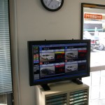 大型モニターに実際のオークション会場を中継させています。いつでもご覧ください。