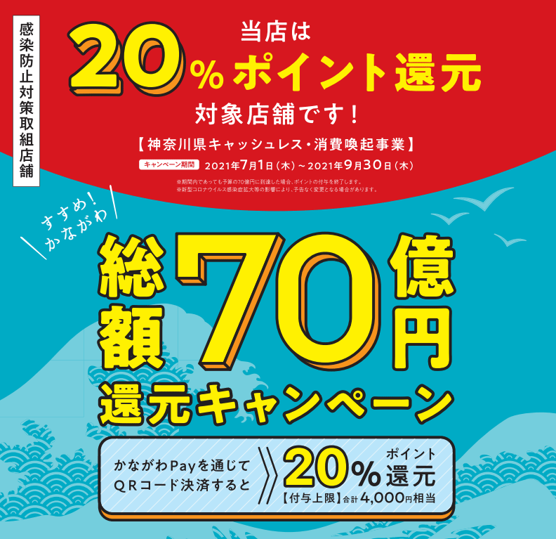 支払いを20%還元される「かなペイ」を併用し、auPayの上限であった10万円を決済して頂きました。残金は現金でのお支払いになりました。ただし、還元上限額は10,000円です。